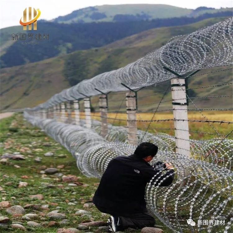 蛇腹型刀片滚笼、围墙防爬刀片刺绳、边境防护刺丝滚笼网