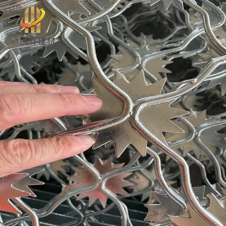 梅花刺片隔离网,是将梅花形刺片焊接在美格网的节点上,形成刺形保护,美观大方、防攀爬能力很强。现在很多监狱、看守所、监区人行通道、车型通道、AB大门都会选择梅花刺片隔离网作为防攀爬金属封闭墙。还可以用于军事设施、电力配电站、边防线、边防哨所的高安全围网。