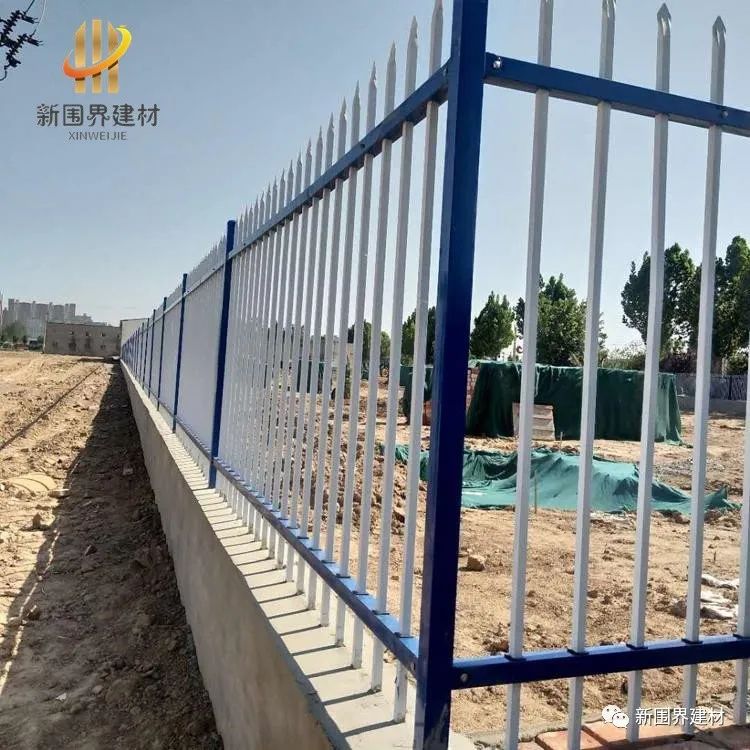 蓝白色组装锌钢护栏、围墙围栏栅栏、方管栏杆