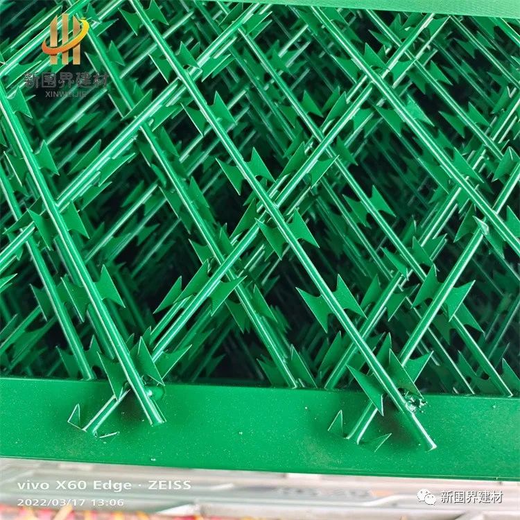 用 途:世界各国已将刀片刺网广泛用于军事重地、监狱、政府机关、银行、生活小区围墙、私人住宅、别墅的围墙、门窗、高速公路、铁路护栏以及边境线等防护安保。