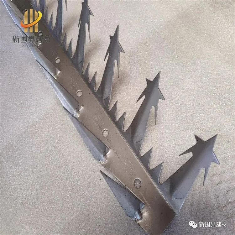 一般用于军事的金属障碍物。本产品用热镀锌冷压板,经过特殊模具冲压而成,一次性成型美观安全!用膨胀螺丝固定在墙头或者金属护栏上,安装方便!