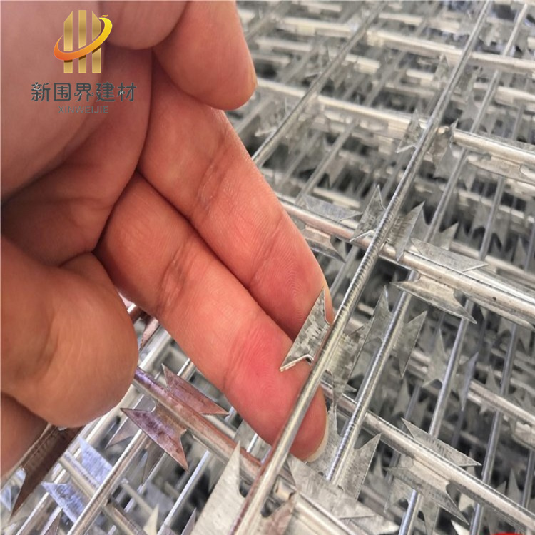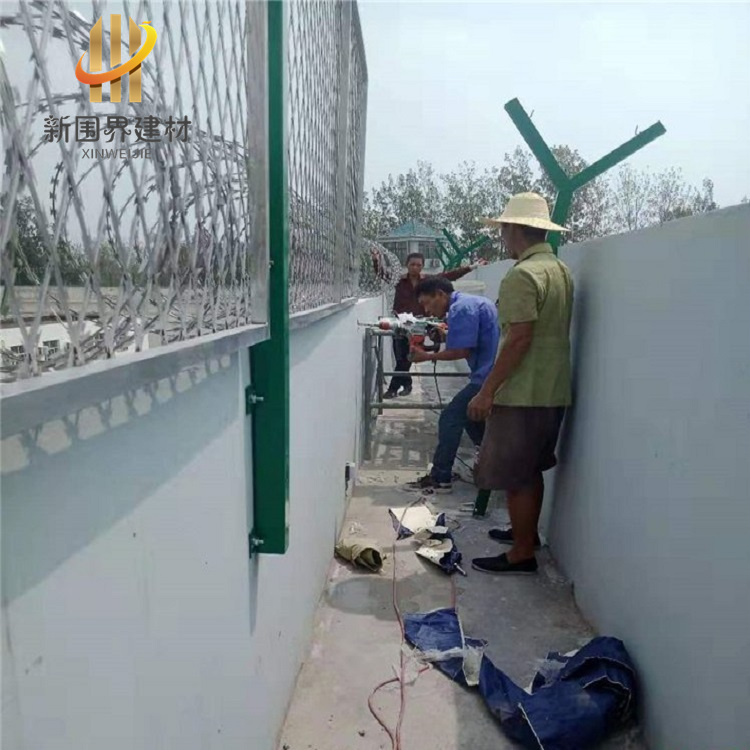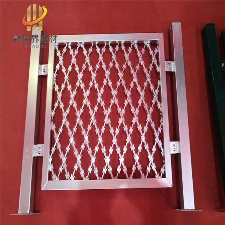 具有防攀爬、抗冲击、抗剪切的特性和良好的震慎作用。多用于警戒线、军事基地等高安全领域。钢网墙上部安装刀片刺网(刺丝滚笼) , 刀片刺网具有吓阻、防翻越等效果,材质坚硬高强度,高张力,造型设计独特,不宜触摸,因而能达到非常好的防护隔离效果,护栏网还具有施工简便经济实用等优点。