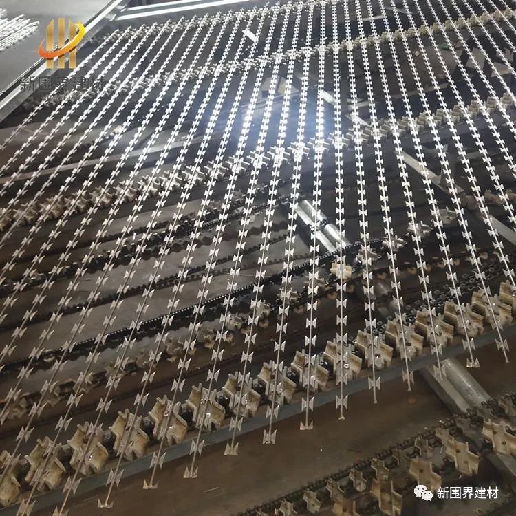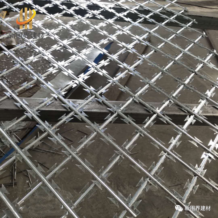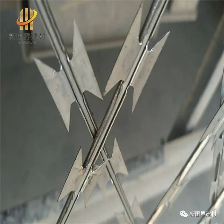焊接刀片刺网丝线材质:采用优质的——热镀锌高碳钢丝、热镀锌中碳钢丝、不锈钢板线等等。
