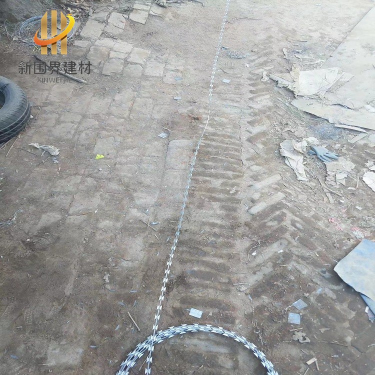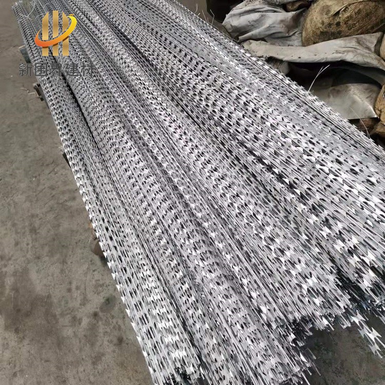 直线型刀片刺网类似于铁丝刺绳成直条状,刺的位置为刀片状,经校直后根据立柱间距一般为三米左右长一根,其长度可以根据客户的要求进行定制,在安装完成后构建成一道防护墙,具有美观防护的作用,常用于公园围墙、学校围墙、小区围墙、监区或者机关单位等场所使用。