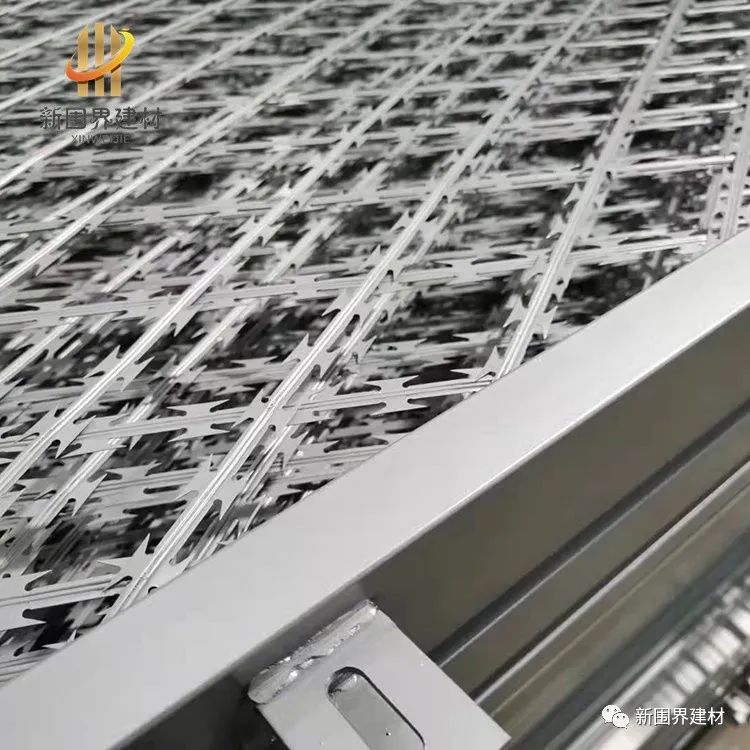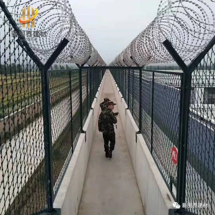 监狱护栏网又称作监狱隔离网“Y型安全防御护网”、监狱钢网墙、金属钢网墙,是由V型支架立柱、加强型焊接片网、安全防盗连接件和热镀锌刀片刺笼组成强度和安全防御性级别很高。