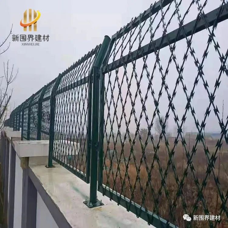 监狱内五米刀刺隔离网、防攀爬刀刺隔离网、菱形刀刺网是 安全防护的重要措施之一,是为了更好的管理 监犯的改造生活而设立的 区域隔离网一般为Y型柱隔离网,顶部架设蛇腹形刀刺滚笼来防攀爬。