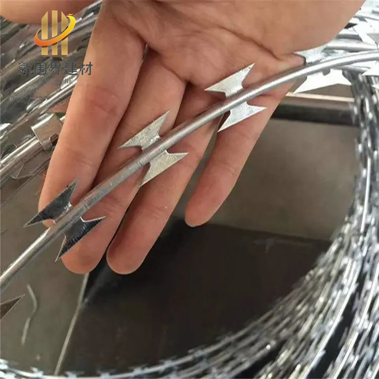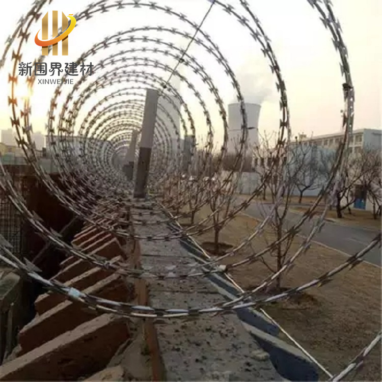 不锈钢304刀片刺绳、监区学校围墙防爬防盗刀片笼网、热镀锌刀片刺铁丝新型防护网