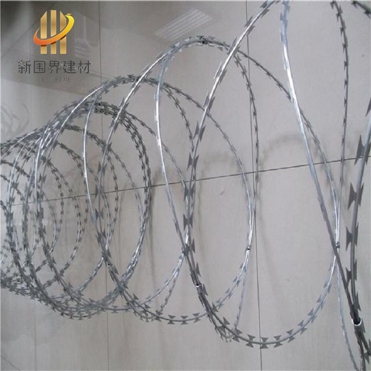 刀片刺绳也叫刀片刺网,在我们生活当中经常见到,如小区围墙、学校围墙、工厂围墙等,一般常见的是螺旋形的,也叫刀刺滚笼。过去也称作手风琴式或蛇腹式刀片刺绳。