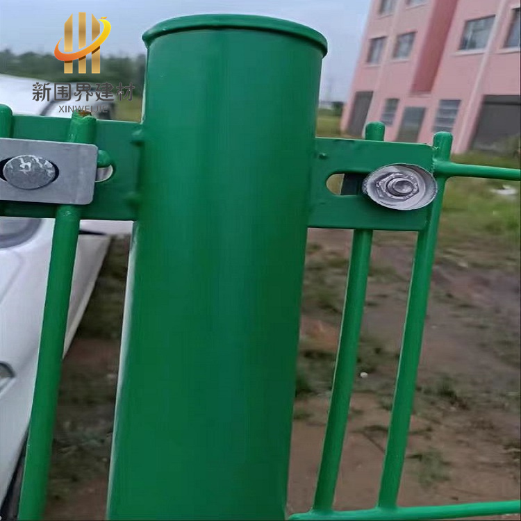 双边丝围栏的网片与立柱的连接采用半圆头方颈螺栓,配以防盗垫圈,能防止双边丝围网被人为地随意拆卸。安装不受地形起伏限制,特别是对于山地、坡地、多弯地带适应性极强。在高速公路外围的防护基本都是用于这种双边护栏网。一是造价较低可以大规模使用;另一方面就是它可以很好的起到人员动物与车道的隔离,起到安全防护的作用。