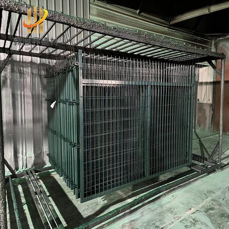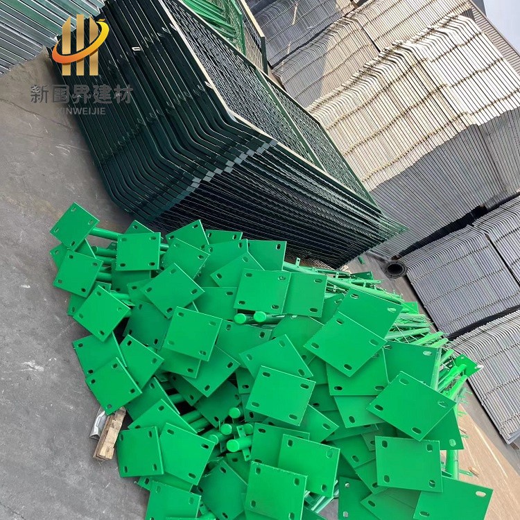 金属网片网丝采用HPB300直径6.5mm高线钢丝冷拔加工,上部向外折角30°焊接成型后整体镀锌并进行热浸塑处理。镀锌量270g/㎡,浸塑厚度0.8mm-1.2mm。