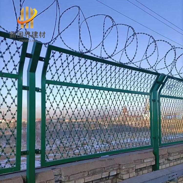 菱形刀片刺网是一种常见的防护设施,广泛应用于监区、看守所、围墙、围栏、安全门等场所。它的特点是造型独特,刺尖锋利,能够有效地阻止人员的非法入侵,起到一定的防护作用。