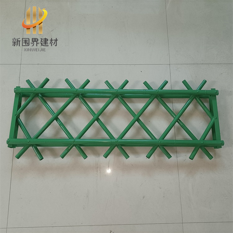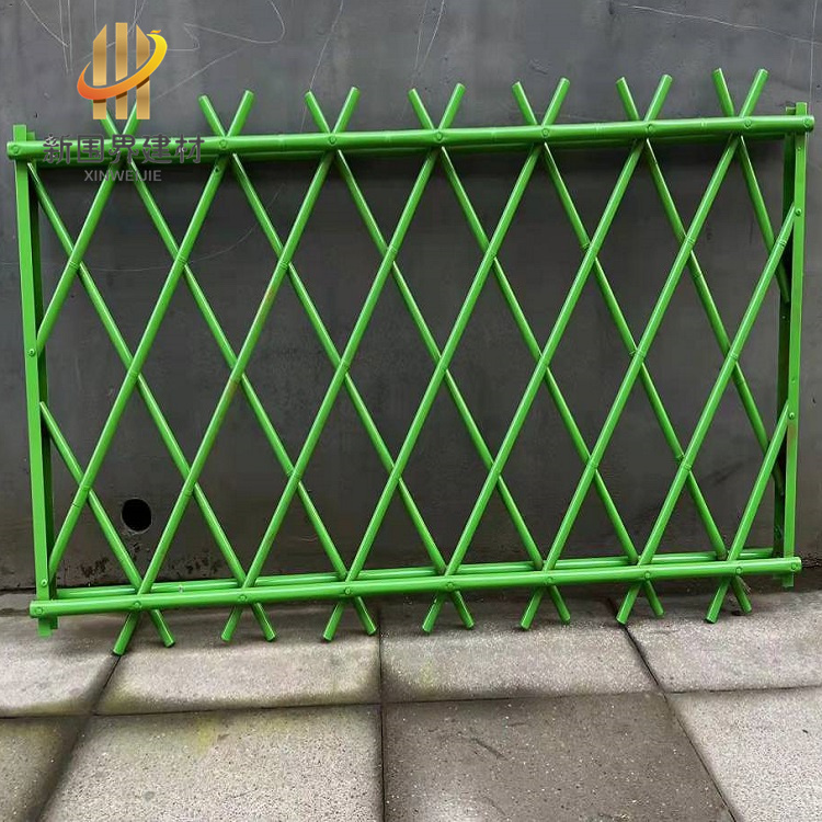 不锈钢仿竹护栏产品颜色:竹绿色、枯黄色。表面处理:静电喷涂。产品特点:仿真竹造型美观、实用、安装便捷,不锈钢材质不生锈、更加耐用。产品高度:0.4-2米,可根据需求定制加工。产品宽度:2米间距、3米间距,可根据需求定制加工。产品主要用途:主要适用于新农村建设、景区、公园、花园、庭院、菜园、别墅、农林等。