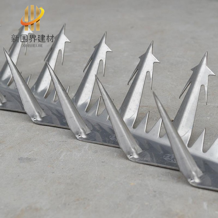 防爬刺钉采用优质低碳热镀锌钢板或不锈钢板一次性冲压而成。牢固耐用、锋利无比、耐腐蚀、性能稳定、使用寿命长、安装便捷等优点,可有效的防爬防盗。