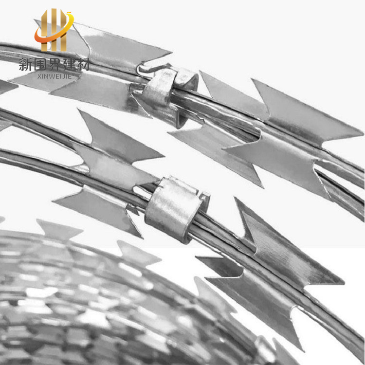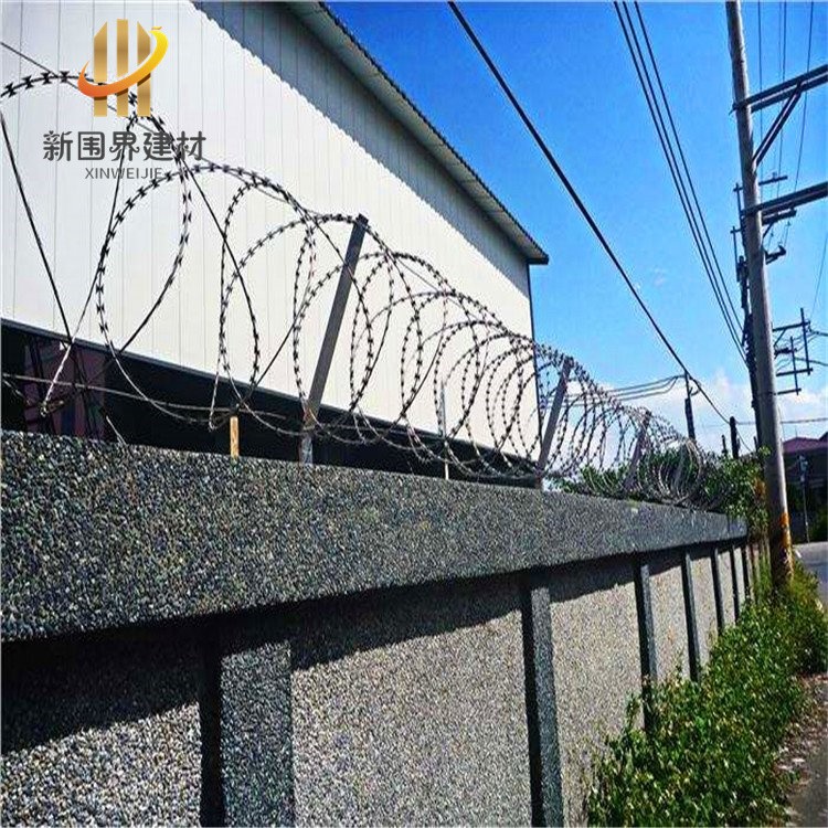 采用优良的原材料,性能稳定,不易腐蚀,刀片锋利,阻隔性能良好,有钢板或者不锈钢板冲压而成刀片形状,组个和防盗性能优越。产品应用广泛,可以应用于园林防护、学校防护、监狱看守所隔离、边防哨所隔离、政府机关单位防护、公寓小区住宅隔离等。