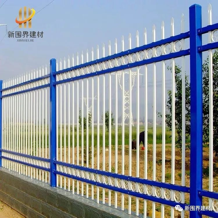 锌钢市政栏杆、花池围墙护栏、小区方管蓝白园艺围栏