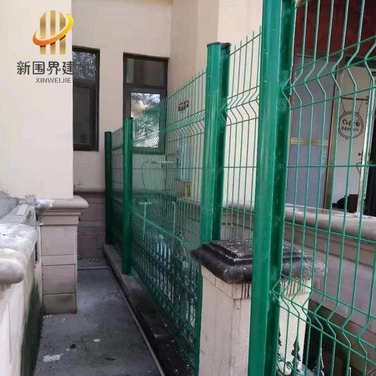 生态园区桃型柱隔离网、医院桃形立柱围栏、户外三角折弯铁丝网