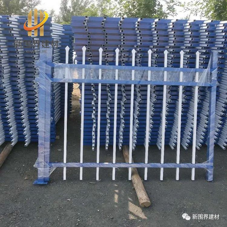 三横杆蓝白色锌钢围墙护栏、镀锌钢管两横栏围栏、小区防护围墙