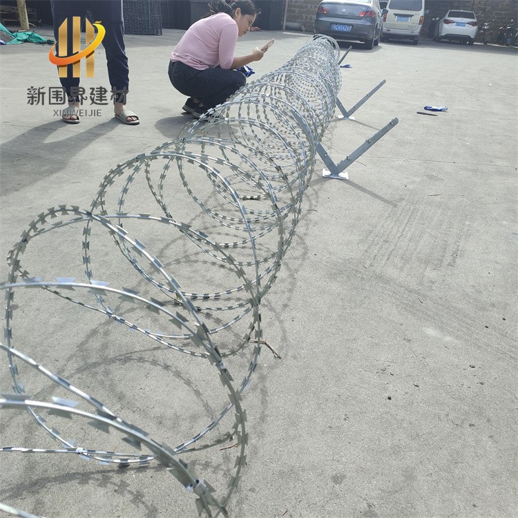 采用钢板(刀板)冲压成型包附于热镀锌钢丝(芯线)之上,由锐利尖角镀锌钢板或不锈钢薄板做刀片,高张力钢丝做芯线组合而成的。BTO-22为国内最常用型号(其它型号也可以订做)。