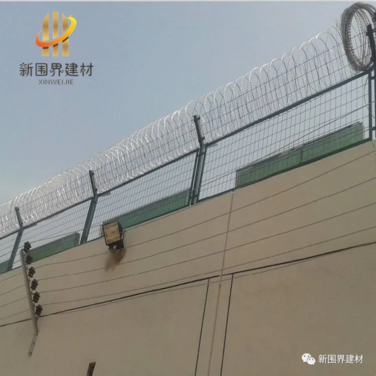 监狱钢网墙由焊接钢网加蛇腹形刀刺网组合而成。产品具有结构新颖、坚固紧密、网面平整、网孔均匀、刀锋锐利、防攀爬、防腐蚀性强等特点。