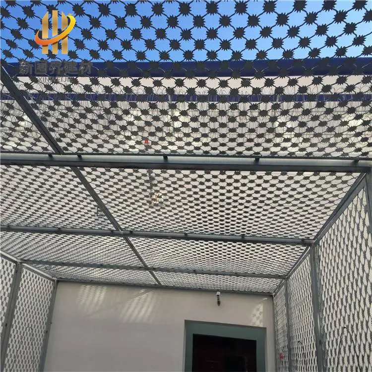 梅花刺隔离网最常用的表面防腐处理方式为整体热镀锌,防腐性能好,不易生锈。常用于监狱、看守所、核电站、军事基地等高安全场所。