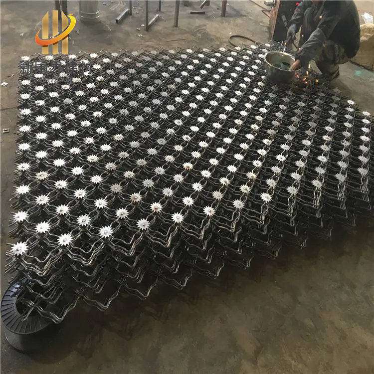 梅花刺隔离网的立柱通常采用80*80*3mm方管,网片根据高度可分为一片式结构也可分上下两层结构,边框:40*40*2.0mm低碳钢矩形管,中间加一根竖向支撑。丝径为5.0m,网孔 100*100m,刺片直径75,厚度为 1.2mm,将网丝、刺片、方管焊为一体,边框与立柱通过边耳无缝连接,采用不锈钢专用防盗螺栓连接,顶部刀片滚刺网采用型号BTO一22,芯丝直径2.5mm。刀长22m,刀宽15m,厚度0.5m,刀间距 35m。双螺旋,直径中600m,密度 10 圈/米,圈距排列均匀,相邻每圈间距不大于200mm。材质采用不锈钢 304。