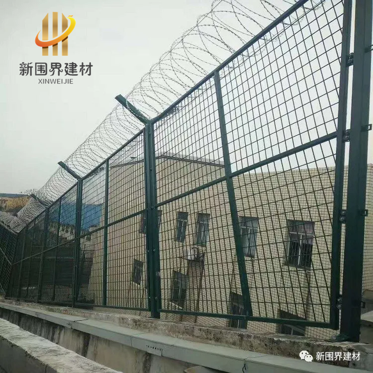 Y型柱看守所围栏网、看守所防攀爬隔离护栏网、刀刺看守所隔离网又称作“Y型安全防御护网”看守所钢网墙,是由V型支架立柱,加强型焊接片网,安全防盗连接件和热镀锌刀片刺笼组成强度和安全防御性级别很高,近年来,被广泛应用看守所、监狱、戒毒所、少管所、机场、边境线等高安全隔离防护区域。