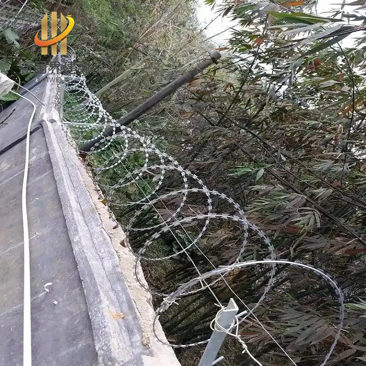 刀片刺网由热镀锌钢板或不锈钢薄板冲压出尖锐的刀片状,高张力镀锌钢丝或者不锈钢丝做芯线组合而成的阻绝器材。由于刺绳造形独特不易触摸,因而能达到很好的防护隔离效果。不仅具有强大的物理阻隔能力和显著的威慑效果,还具有良好的耐候性能和广泛的适用范围。
