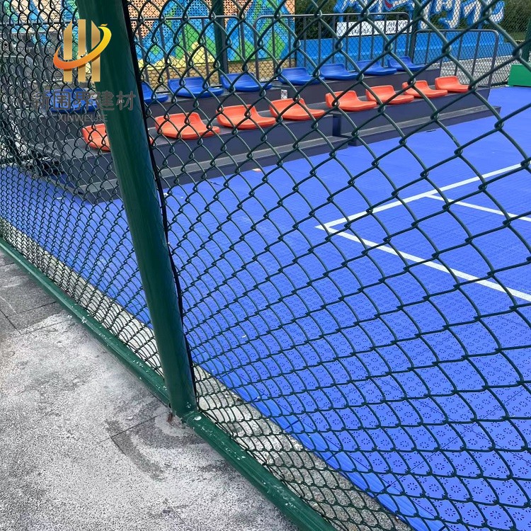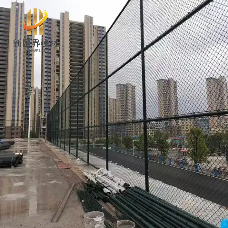 球场围网是由低碳钢丝编织成菱形网孔(45×45mm或50×50mm),柔性好,抗冲击性强。