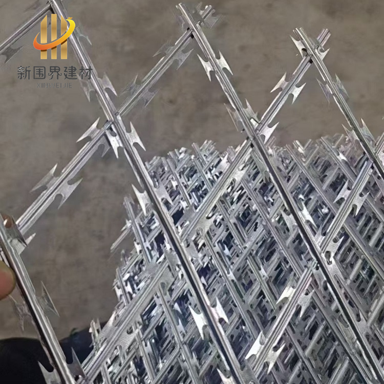 焊接刀片刺网具有防锈性能强、吓阻效果好、施工便捷、经济实用等优点,适用于多种安全防护场景。采用镀锌钢板或不锈钢薄板制造刀片,结合高张力钢丝芯线,具备优异的防锈能力,适合长期户外使用。刀片尖锐设计能有效阻止攀爬或破坏行为,兼具美观与威慑力,适用于监狱监区、巡逻通道、军事禁区等高安全需求场所。