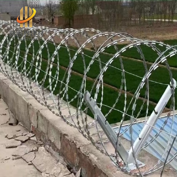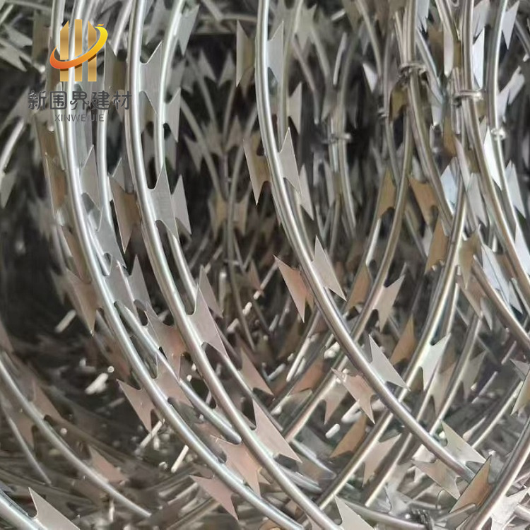 蛇腹形刀刺网采用蛇腹状拧编结构,通过双螺旋交叉布局形成密集刀刺阵列,具有物理隔离与心理震慑双重防护功能,具备防攀爬、抗剪切、抗腐蚀特性,广泛应用于监狱、军事管理区、机场等高安全场所,常与高压电网、监控系统组合构成多层次安防体系。